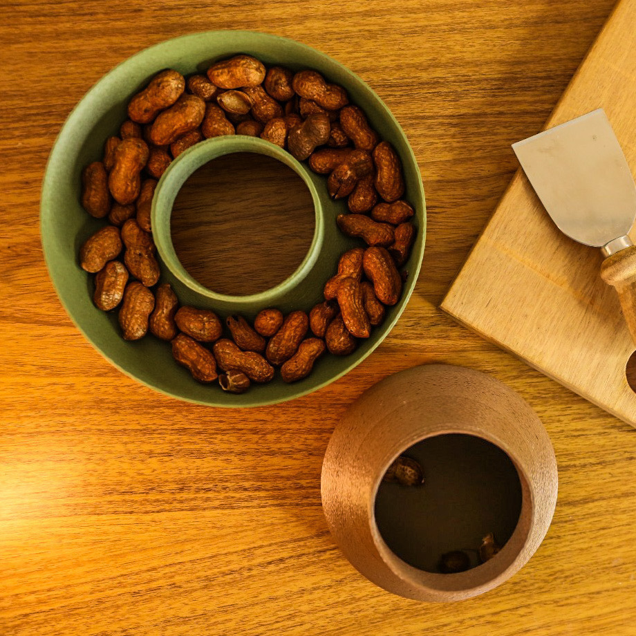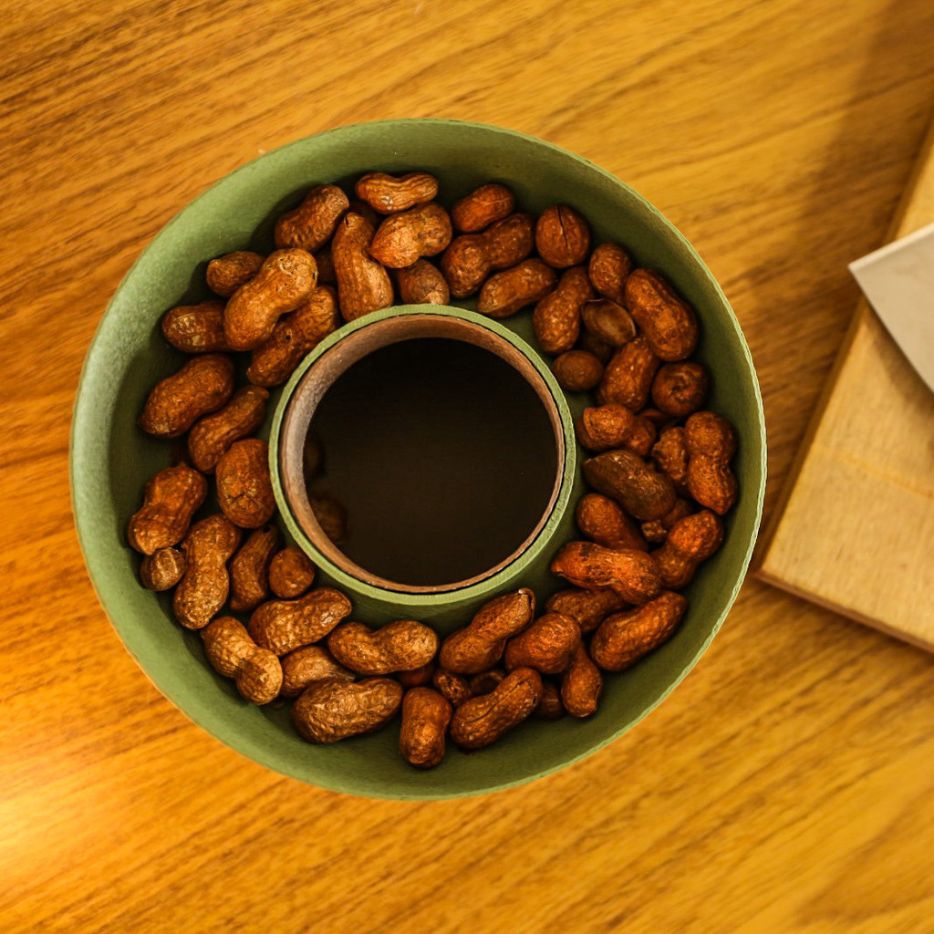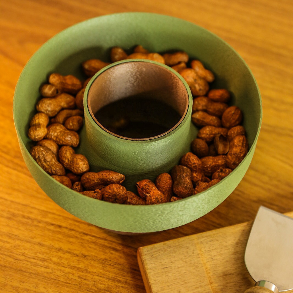 A Cumbuca Casca é um recipiente inteligente e elegante, ideal para servir petiscos como azeitonas, pistaches, amendoins e outros alimentos com casca ou caroço. Seu design funcional em duas partes permite uma experiência prática e organizada: na parte superior, você serve os petiscos; na inferior, que se enrosca perfeitamente na base, você descarta as cascas ou os caroços — mantendo o ambiente limpo e agradável.