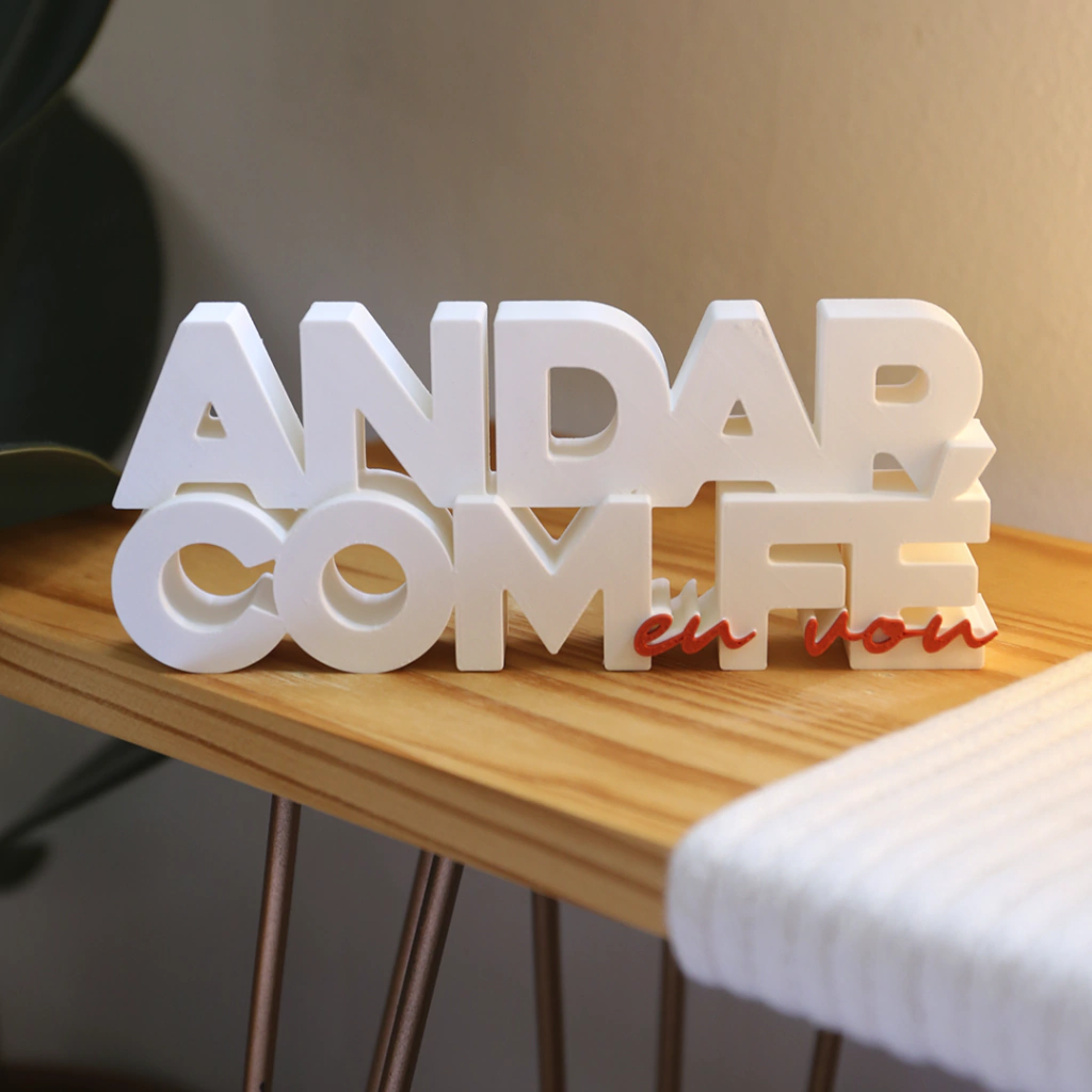 O letreiro ANDAR COM FÉ EU VOU é uma peça cheia de boas energias e significado. Produzido em impressão 3D, ele traz um toque moderno e afetivo para qualquer ambiente — seja na estante, no altar, na mesa de trabalho ou naquele cantinho especial da casa.