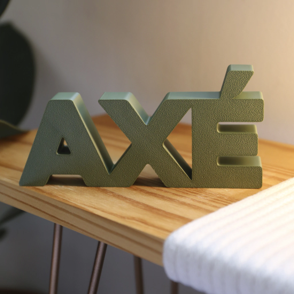 O letreiro AXÉ é uma peça cheia de boas energias e significado. Produzido em impressão 3D, ele traz um toque moderno e afetivo para qualquer ambiente — seja na estante, no altar, na mesa de trabalho ou naquele cantinho especial da casa.