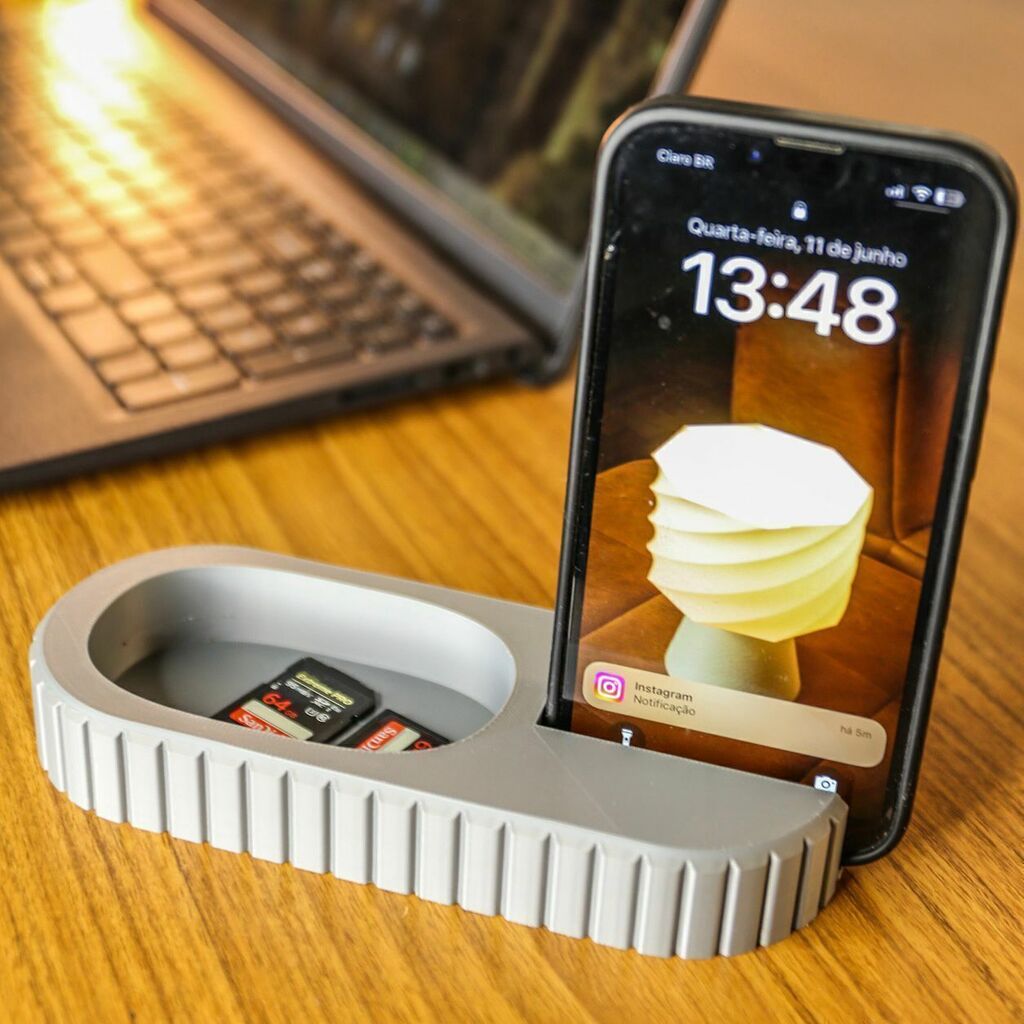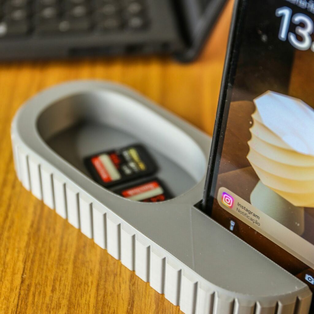 Feito em impressão 3D, o porta treco Célula tem design simples e funcional. Possui encaixe para celular e espaço para armazenamento de itens pequenos. Perfeito pra uma mesa de home office ou até mesmo pra mesa da firma.
